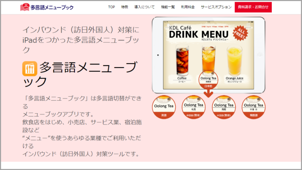サービス名「多言語メニューブック」