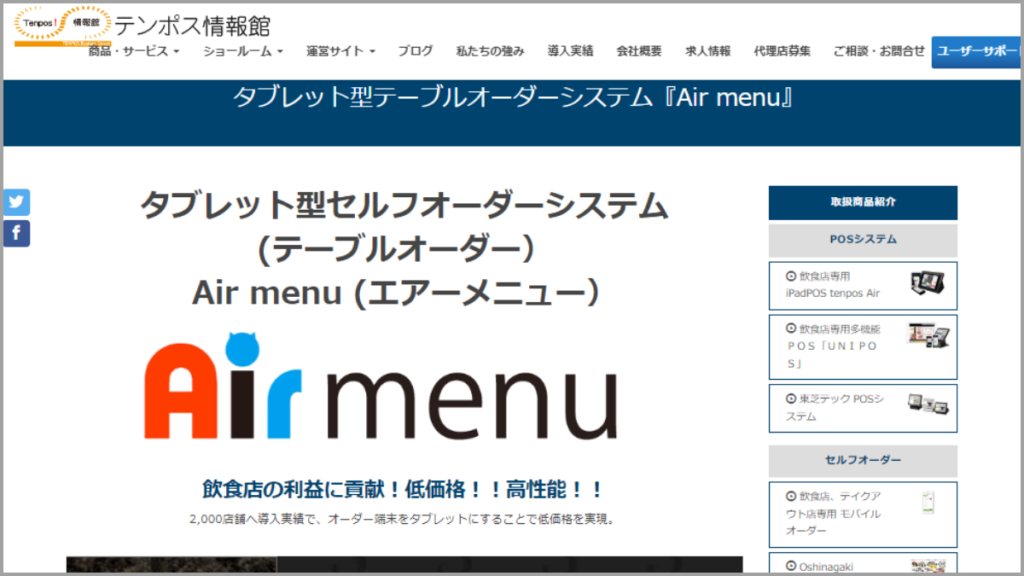 ウェブサイトURL:https://www.tenpos.jp/selforder/airmenu.html