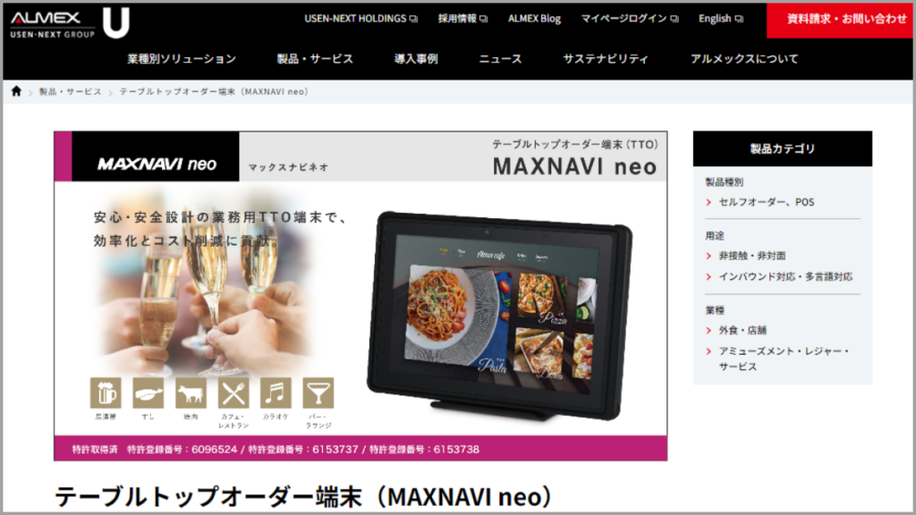 MAXNAVI neo(アルメックス・ネオ)は、9か国語にに対応した多言語セルフオーダー端末です。
