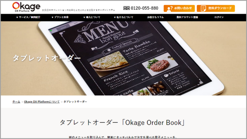 ウェブサイトURL:https://okagekk.com/service/tablet-order/